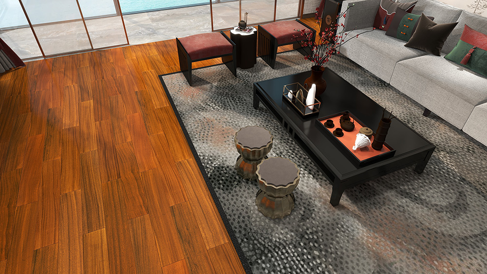 番龍眼實木地板油吸收性強,顏色自然柔和、紋理清晰真實,保留木材本質的色調且均勻,不會出現(xiàn)色差。安裝效果好,給人一種古香古色感覺。